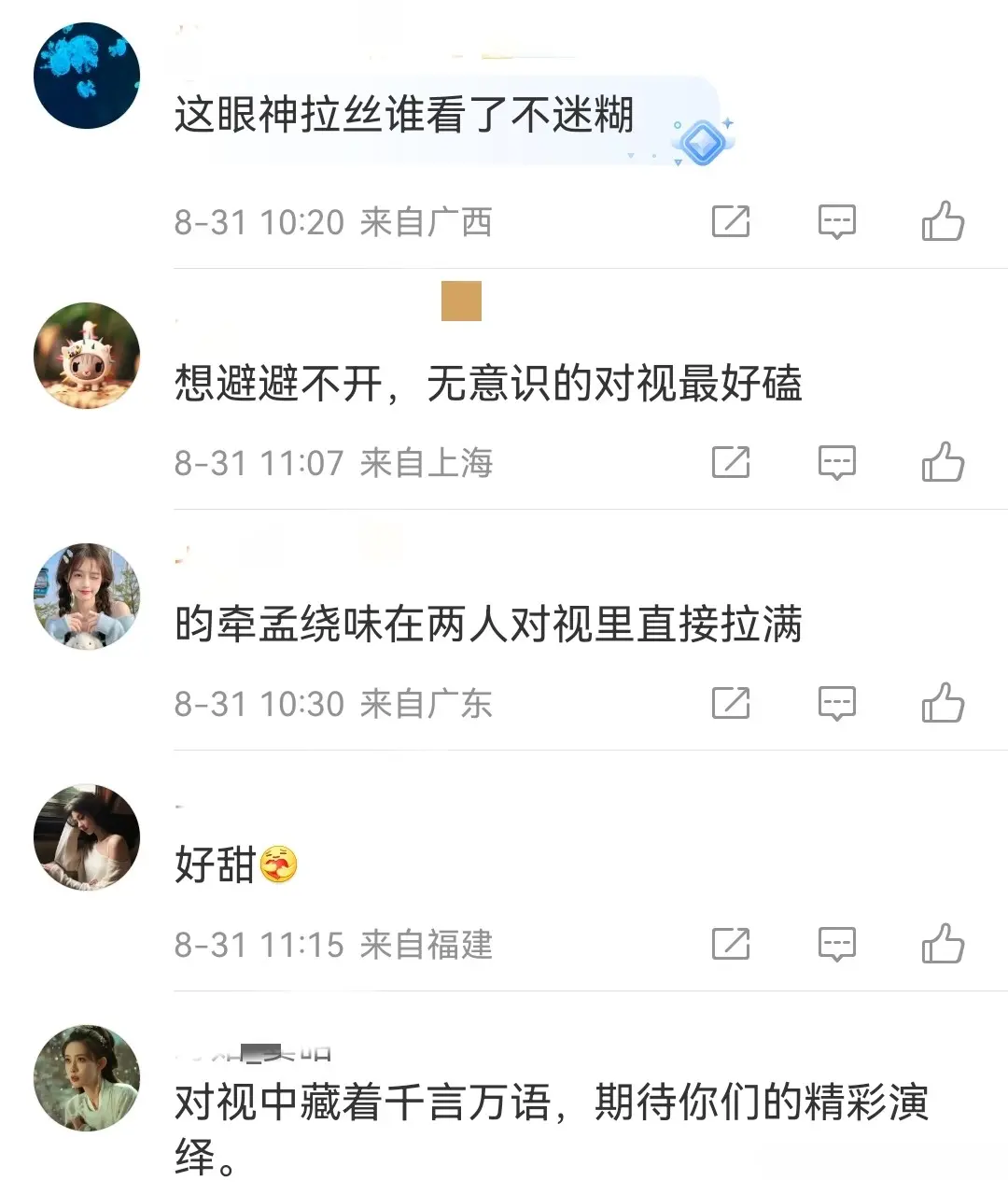 网友们的评论也是全体开磕昀牵梦绕,没办法,谁让他俩演技又好,颜值又高,剧外撒糖细节还好磕,这谁看谁都想谈恋爱了。[泣不成声]